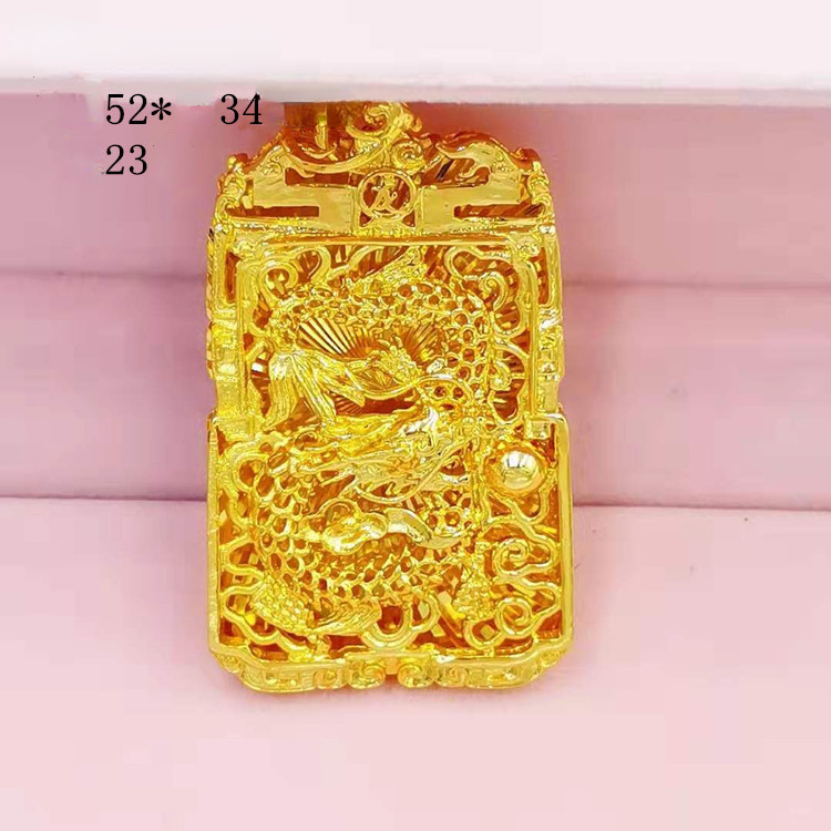 Real Gold Color Necklaces with Square Pendant Shiny Choker Snake Chain Exquisite Necklace for Men Women Fine Jewelry Never Fade pendant 1